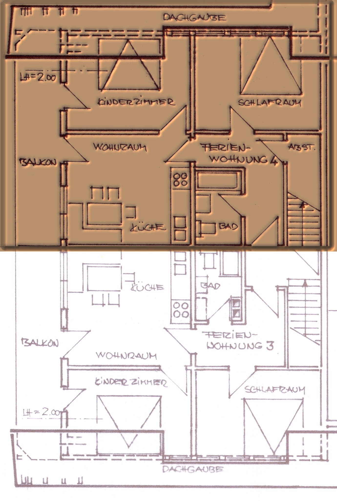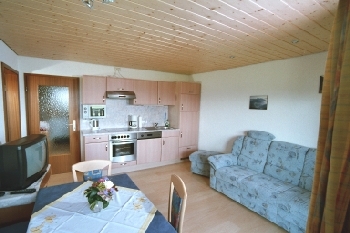 Für 2-5 Personen, ca. 52 qm Wohnfläche mit großem Südbalkon, Komfort-Wohnküche mit Mikrowelle, 2 Schlafzimmer, Bad mit Dusche und WC.